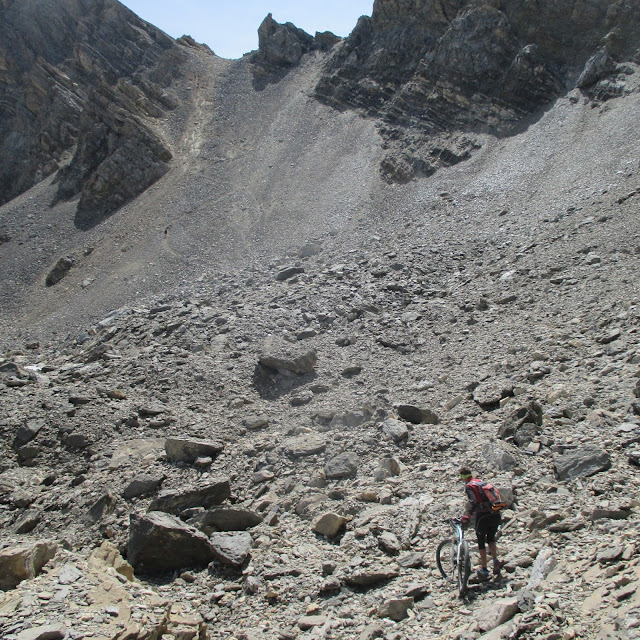 C'est la première fois que j'ai à mettre les mains aux fesses de Mark pour le pousser ! C'est tellement vertical !! Strava donne une pente à 49 %... Mais avec de la persévérance, on y parvient : nous voici à 2973m avec le vélo !!